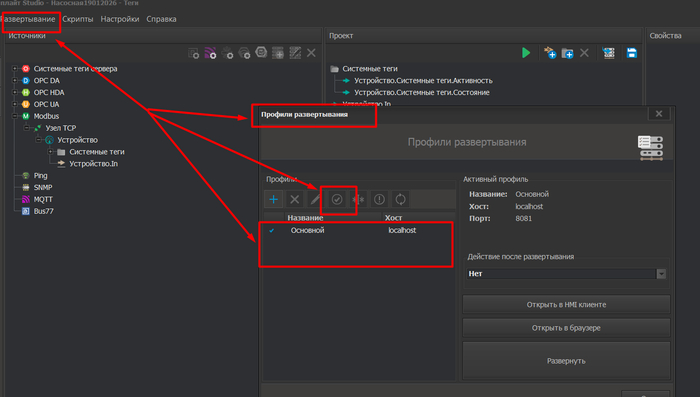 Далее работаем со SCADA. Будем считать, что она скачана, установлена и запущена Среда разработки.