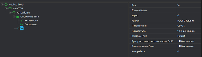 Вносим тег. У ПЛК 200 в режиме TCP Slave адресация начинается с 0.
