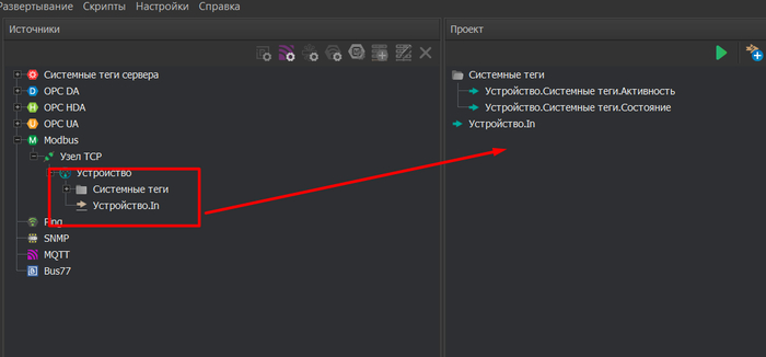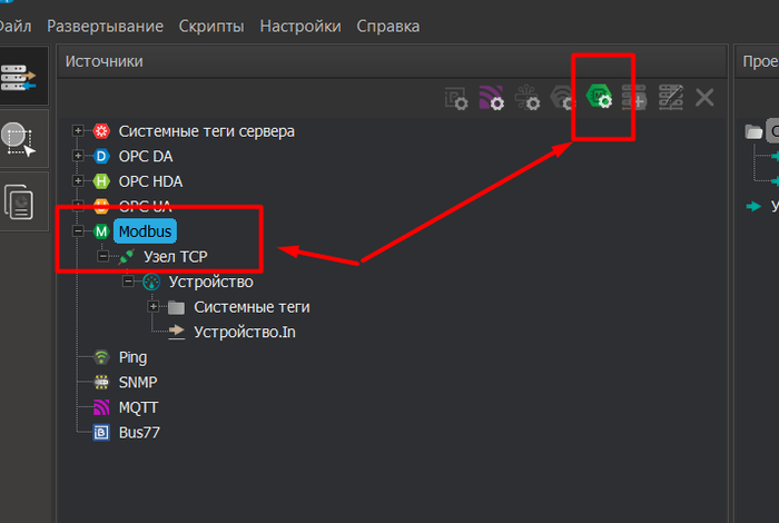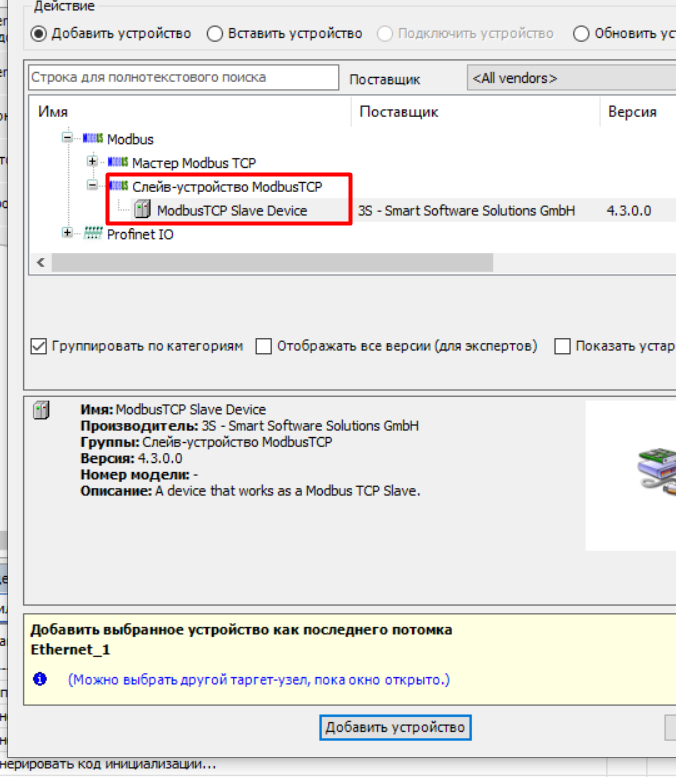 Список различных драйверов. Выбираем напрямую Modbus Драйвер, заходим в настройки.