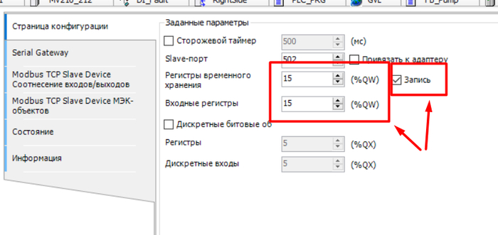 Далее залезаем в его настройки, вводим количество регистром и ставим галочку на запись, если нужно read\write.
