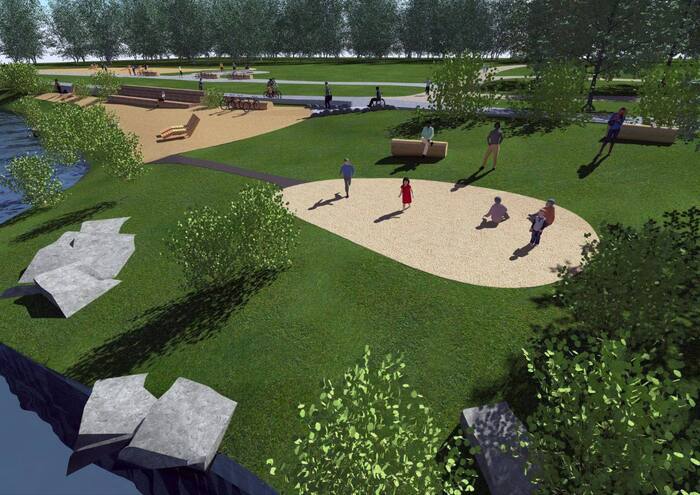 Скоро на любимом озере появится цивилизованный спуск к воде, стильные лавки-ступени и даже детская песочница!