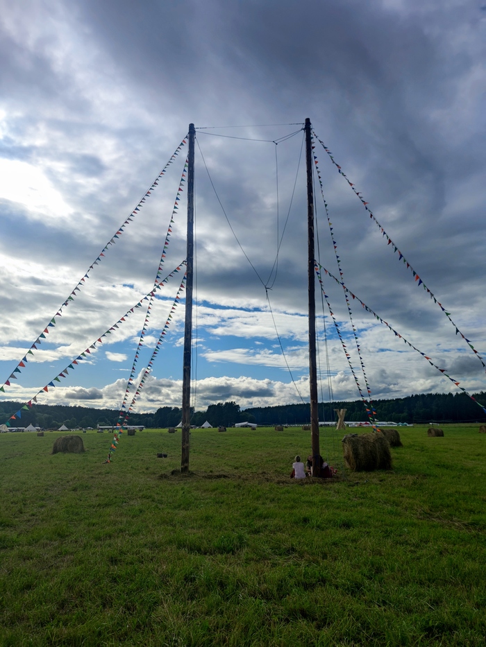 Первым делом — крыша, защита и от пекла, и от осадков. Начали с двух тканевых шатров, которые никогда не лишние.
