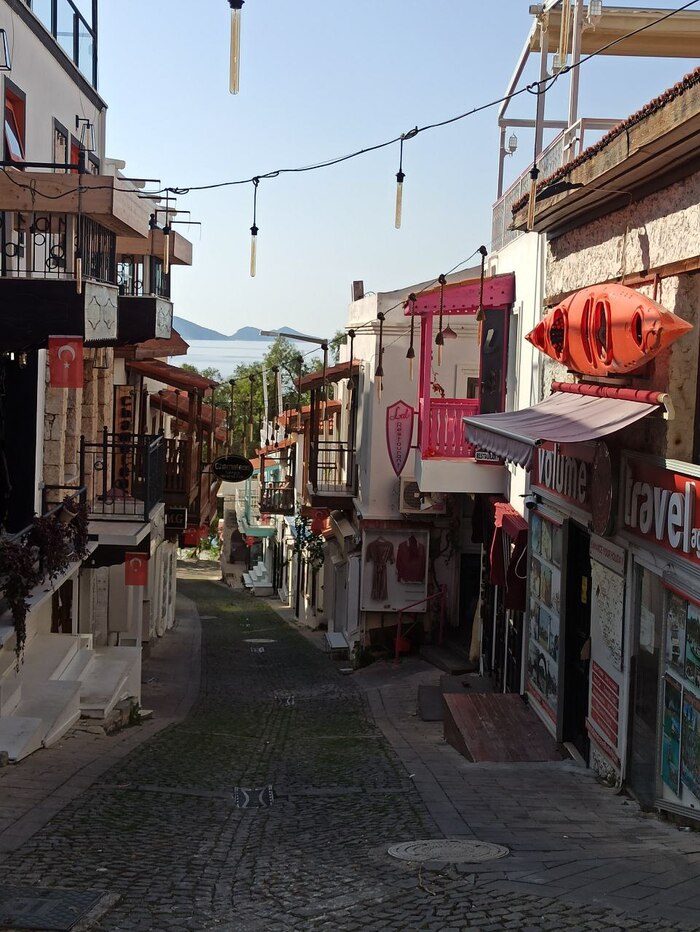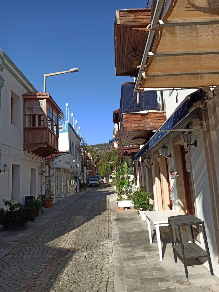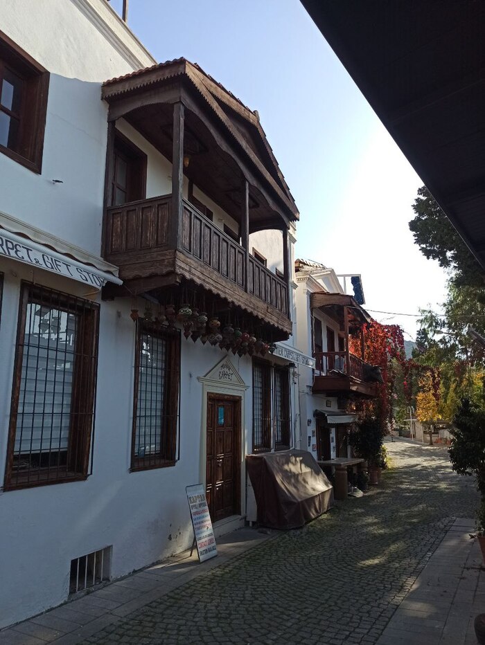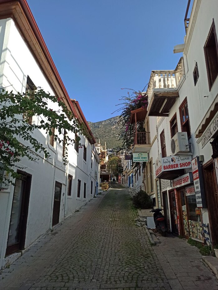 Мое фото из путешествия на Новый Год 2023. Ни души и красота. Вот так выглядит Калкан без туристов. Деревянные балкончики и бело-синий цвет -наследие греков