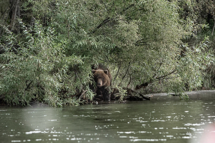 Рафт отходит, шумный берег остаётся позади, и вдруг всё стихает: мимо медленно проплывают лохматые сопки, хребет, укатанный кедровым стлаником, и редкая медвежья спина на берегу.
