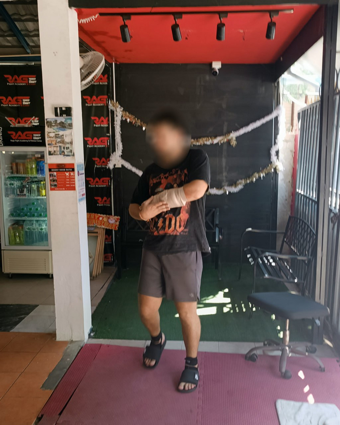 Сегодняшняя тренировка по муай-тай началась как обычно, но... В разгар спаррингов один из участников, наш соотечественник, получил серьезную травму — открытый перелом руки. Кожа не выдержала, пошла кровь.