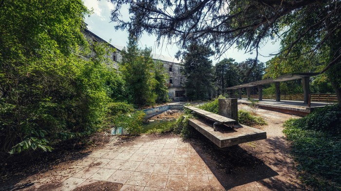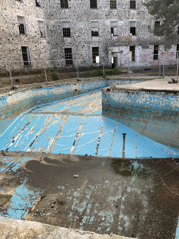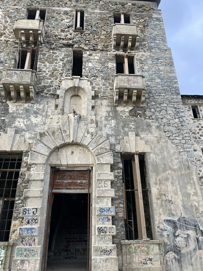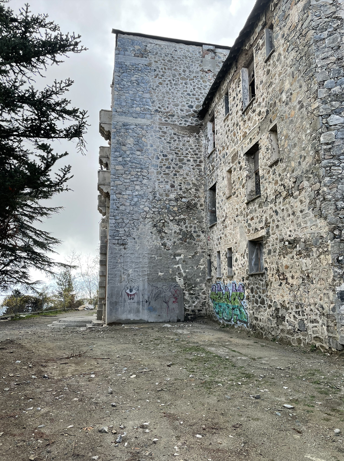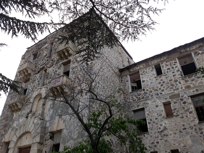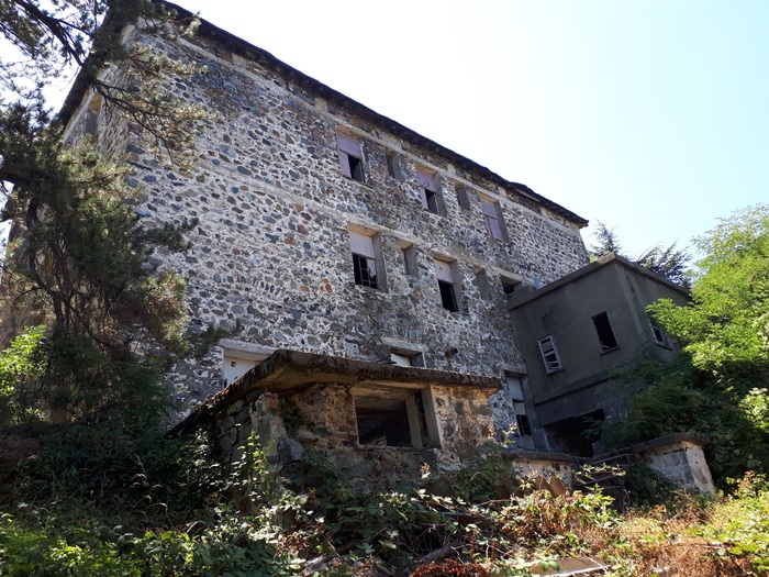 Ну а отель был построен в конце 20-х годов прошлого века. Находится он в горах, в деревне Продромос (кстати, если кто соберется посетить - рекомендую в выходные дни, поскольку в 200 м от отеля находится заведение с фантастической сувлой). Был самым роскошным и самым высокогорным отелем в те годы. Легенды гласят, что после смерти отца сыновья не смогли договориться о наследстве, кто-то из них тоже помер, и так или иначе - отель пришел в полное запустение в 80-е годы. Местные жители со временем вынесли из него все.