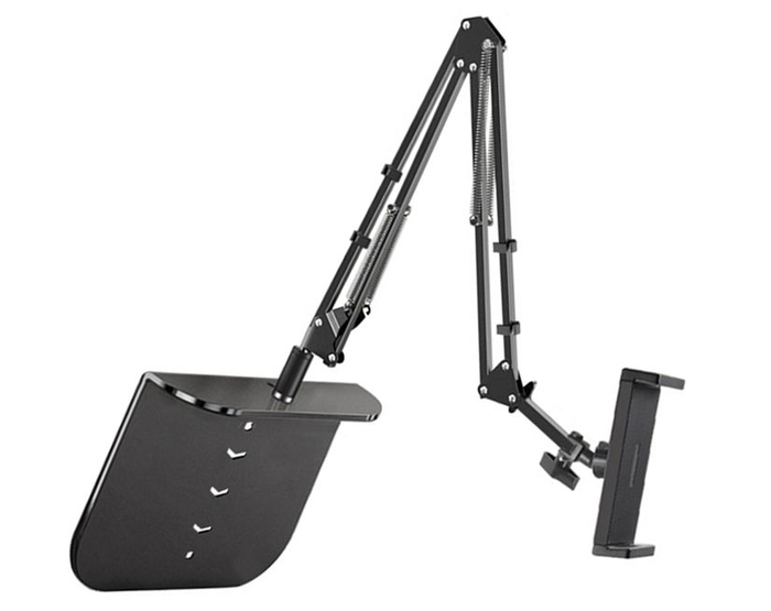 Кронштейн совместим с камерами, светильниками, микрофонами и даже смартфонами. Конструкция позволяет закрепить оборудование на штатив, стол или стеновую панель. Механизм блокировки движется плавно и не изнашивается со временем.