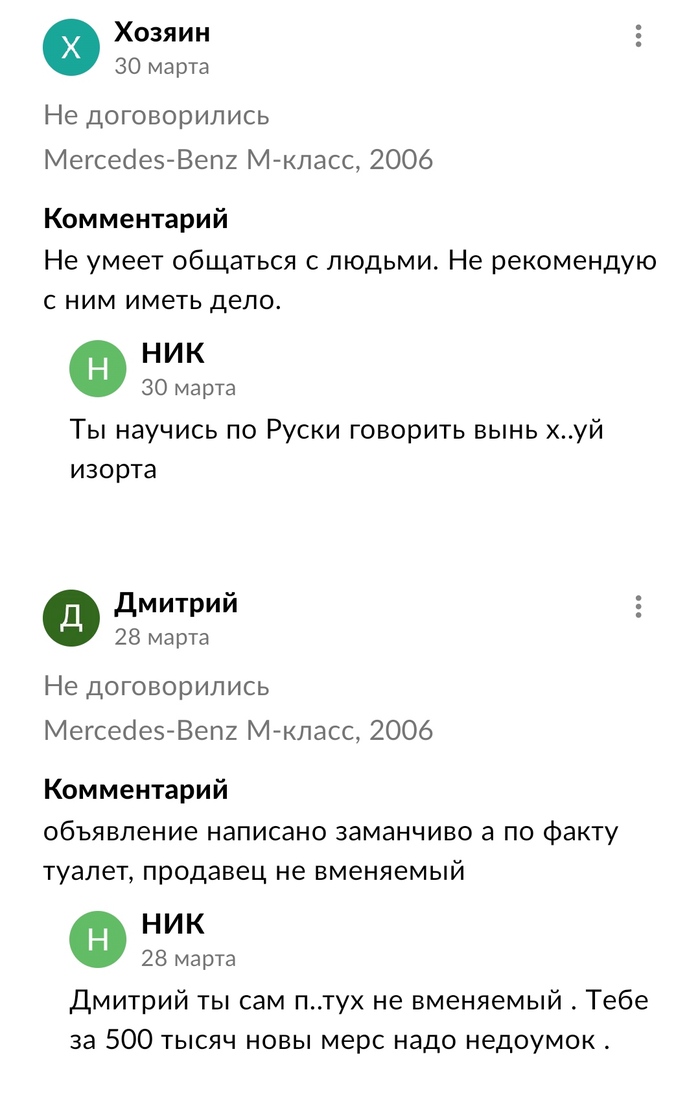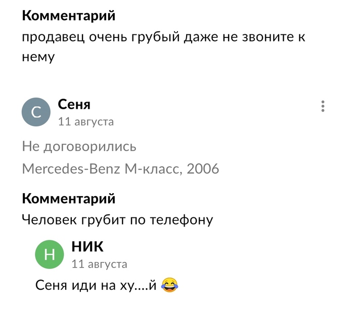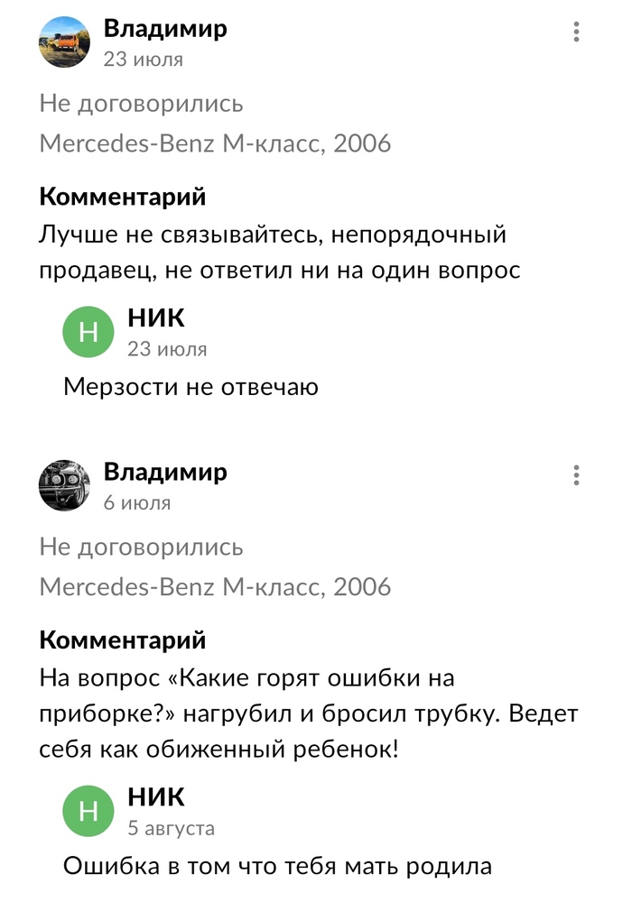Продавец начал бомбить со всех объявлений, по которым я ему писал ранее.