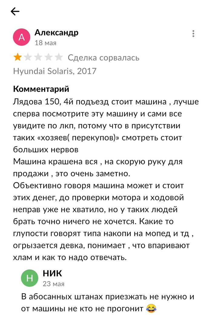 В недрах гаража который мы купили с дачей был найден стартер от Оки,вспомнилась старая реклама Авито,сколько стоит ваш беспорядок?)) Не сильно разбираясь в тенденции данного направления запчастей,выставляю за смешные 1500 тысячи деревянных. Какое же было удивление,когда телефон в течении вечера обрушили звонки желающих забрать стартер. (Как оказалось в дальнейшем стартер был не б/у а новым.) Внезапно без обсуждения деталей падаёт заказ на Авито доставку. Смотрю профиль-понимаю ,что это перекуп,но пока это к делу не относится,кто успел -тот и молодец. Отправляю,спустя время продавец забирает заказ,я получаю деньги. А через пару дней мне начинают поступать сообщения от человека,что я продал ему некачественную деталь . При этом никаких решений проблемы он мне не предлагает. А вчера мне приходит 1звезда и плохой отзыв,а знаете почему у меня от этого пригорает 🔥потому что я всегда стараюсь быть тактичным и учтивым продавцом. И рейтинг у меня по отзывам всегда 5 . Оспорил отзыв,но Авито все равно,стандартная отписка,хотя человек прямым текстом пишет,что за деньги исправит отзыв,где же мать его чудесные правила avito,почему это не работает,человек сам проебался,на пвз когда забирал ,цена смешная,а я теперь хуевый продавец.