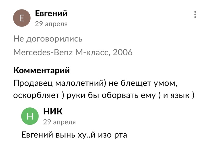 Но Авито не видит в этом отзыве никаких проблем, говорит, что это наши личные внутренние впечатления друг о друге, покупатель не купив товар имеет право писать любой отзыв на продавца) Пытаюсь написать встречный отзыв на наше неприятное общение с покупателем уже по её товару (которая очень «грамотно» сразу добавила меня в ЧС), при моем вопросе сделать скидку 99% на её коляску, но встречаю отказ Авито, отклонение отзыва по причине, что диалога не состоялось) Дальше при попытках как так у вас работают алгоритмы, почему один человек может написать все что угодно, хоть как вежливо общайся, а я в ответ - нет, поддержка Авито просто выкидывает меня из диалога. Решение так сказать, этой проблемы, они нашли вот такое))