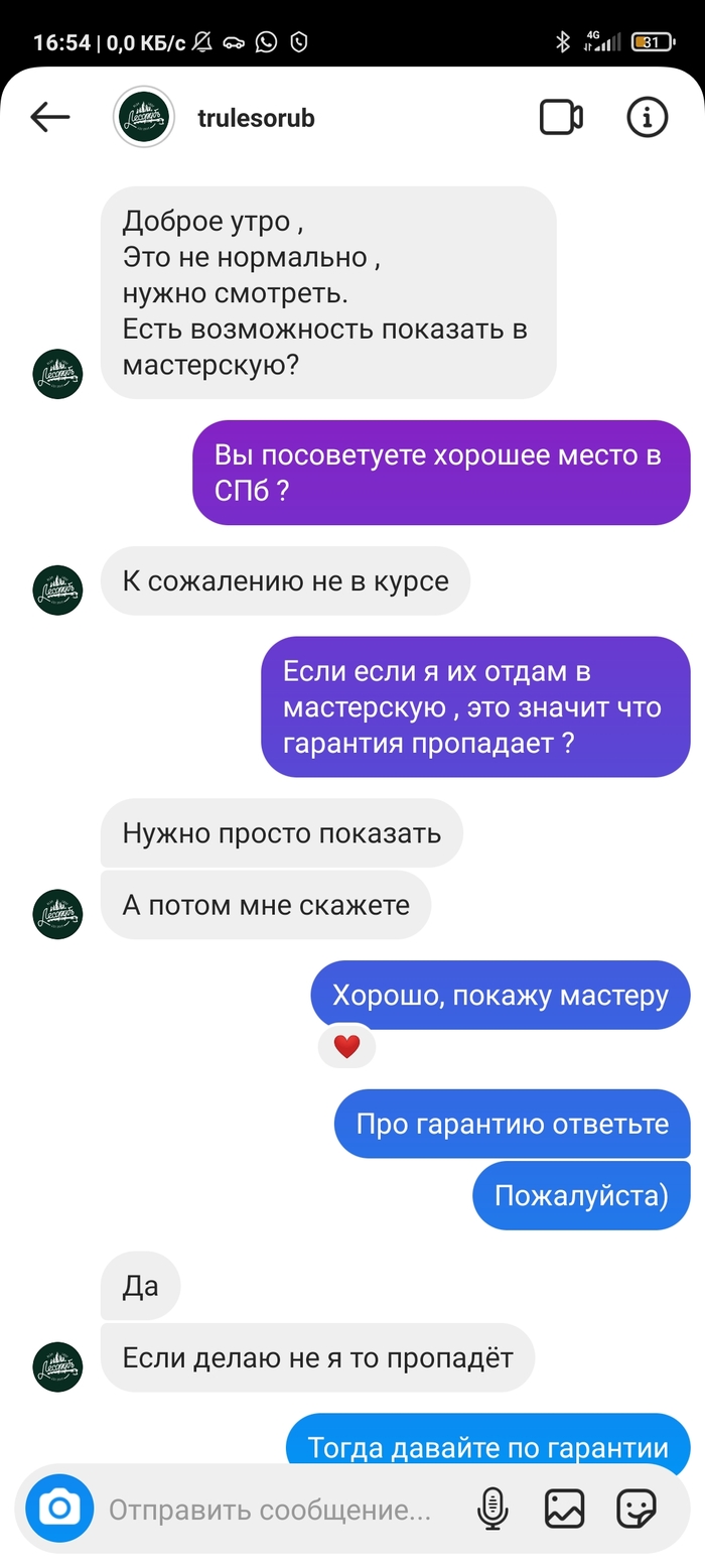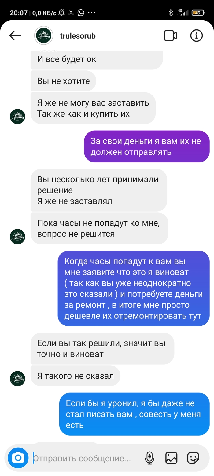 После идёт обсуждение условий ремонта по гарантии , где он предлагает мне отправить часы обратно в Киев из СПб для проверки и установления гарантийного случая , но за мой счёт.