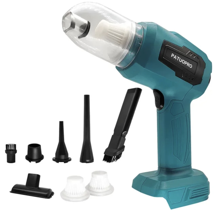Аккумуляторный автомобильный пылесос PATUOPRO предназначен для быстрой очистки салона от пыли, песка и мелкого мусора. Совместимость с аккумуляторами Makita 18 В позволяет использовать инструмент в рамках уже существующей аккумуляторной системы. Компактная форма облегчает доступ к труднодоступным зонам под сиденьями и в нишах.