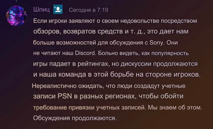 Может, лучше похоронить эту игру ради прецедента? Типо, нахуй менять отзывы на положительные за малейший пряник, если можно угандошить игру, чтоб они там не наобещали и не наделали. Да, игра была норм, и жалко её терять будет, но зато наконец покажем этим корпоративным выблядкам, что творить подобную хуйню себе дороже: накосячил ради своих амбиций и жажды наживы - будь готов распрощаться с аудиторией навсегда, сколько ты не делай "хорошо, как было". Серьёзно, челы, где ваши яйца? Вам играть больше не во что? Сони че то там пообещали, поманили сладким писюном - и всё, вся борьба.