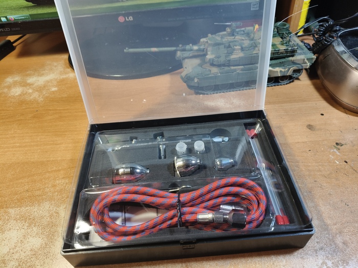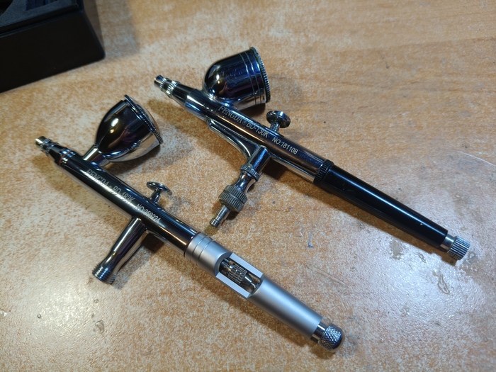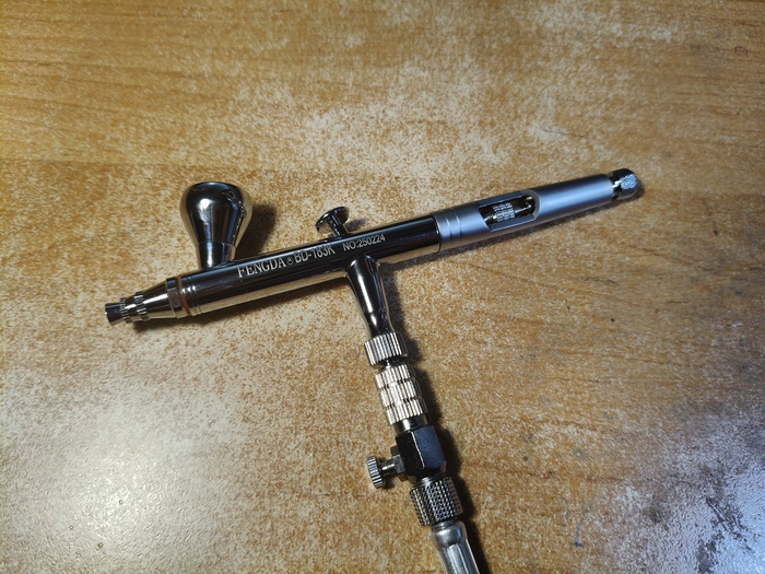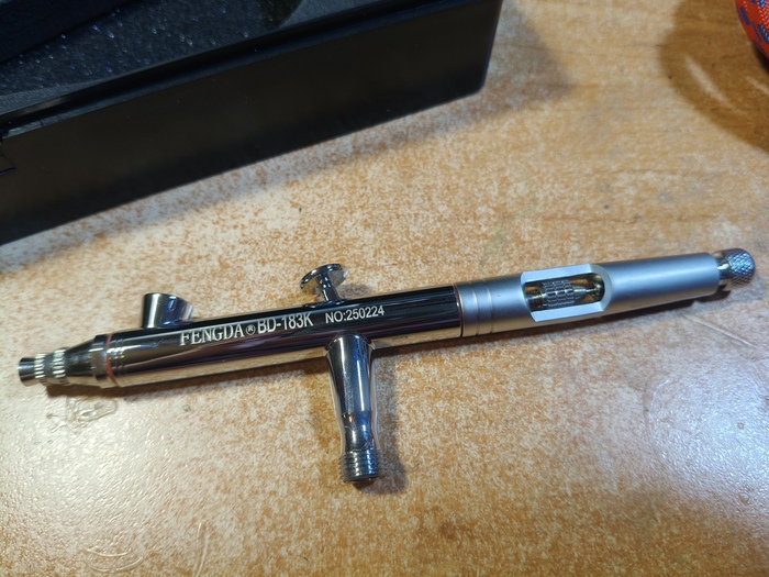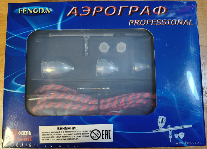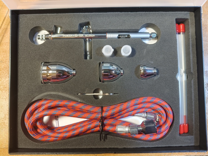 Приветствую, уважаемые подписчики, коллеги-моделисты и просто читатели! Долгое время я пользовался двумя китайскими аэрографами Fengda BD-130K и BD-135 (один для более тонких работ, другой для окраски по площадям и лакирования). Потом приобрёл себе замечательный германский инструмент Harder&Steenbeck Infinity 2in1 (0.15-0.4 мм). Но в следствие дороговизны Инфинити, а также дефицитности и снова дороговизны расходников на него, эту машинку я берегу и расчехляю только для самых тонких работ, буквально на каждой четвёртой или пятой модели, не чаще. И получается что я, имея классного дорогого немца 99% времени всё равно продолжаю красить старыми бюджетными китайцами. Проанализировав эту ситуацию, я решил купить себе "рабочую лошадку" уровнем повыше, но всё равно бюджетную - чтоб не жалко было пользоваться постоянно. Потому заранее прошу комментаторов не писать, что надо было брать Айвату, а это фуфло. Поскольку из всех китайских производителей в сфере аэрографии наиболее благополучный опыт у меня как раз с Fengda, я решил остановиться снова на их продукции, и выбрал модель с тремя диаметрами игл и сопел в комплекте. Что ж, посмотрим.