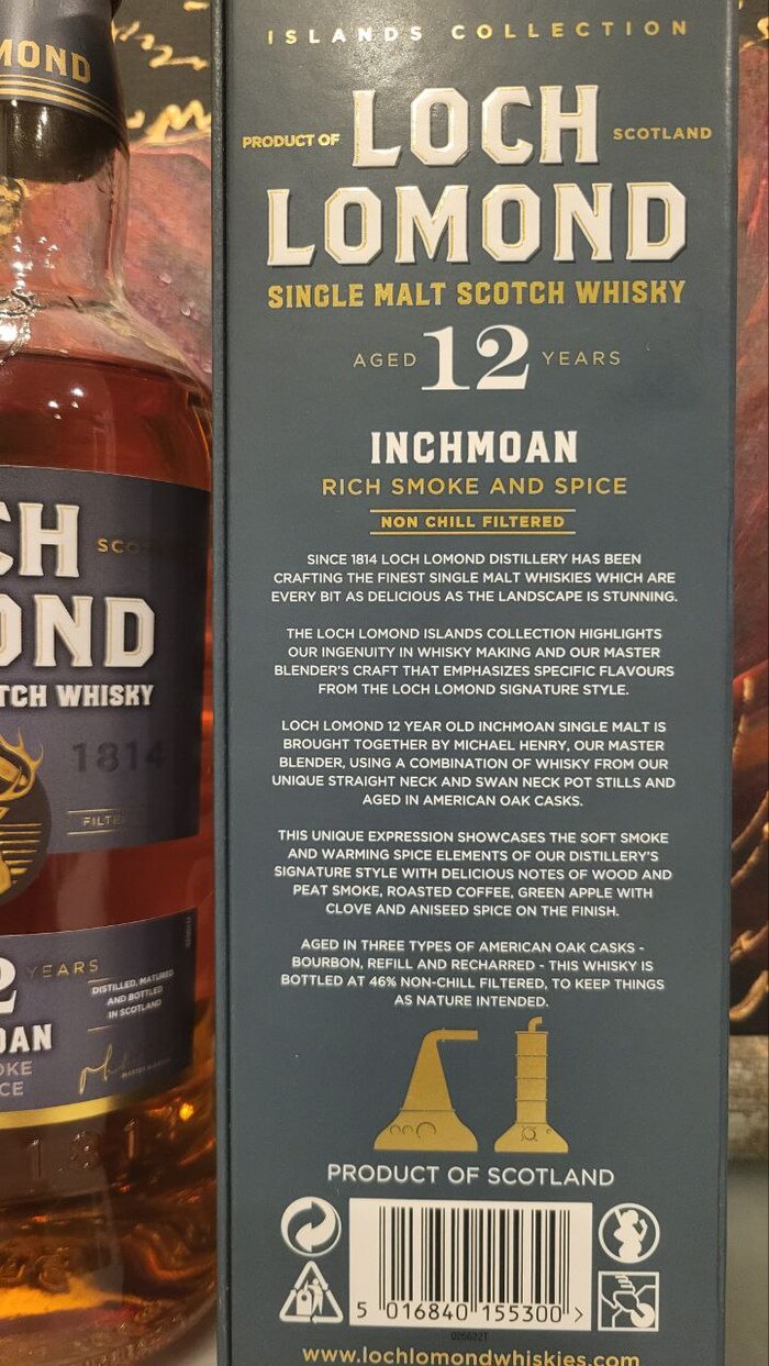 Начнем с таинственного и красиво звучащего подназвания Inchmoan. Состоит оно из двух гэльских слов «Inch» - остров, и «moan» - дым. «Дымный остров» звучит конечно менее таинственно и красиво, но любителям виски уже спойлерит вкусоароматику напитка.