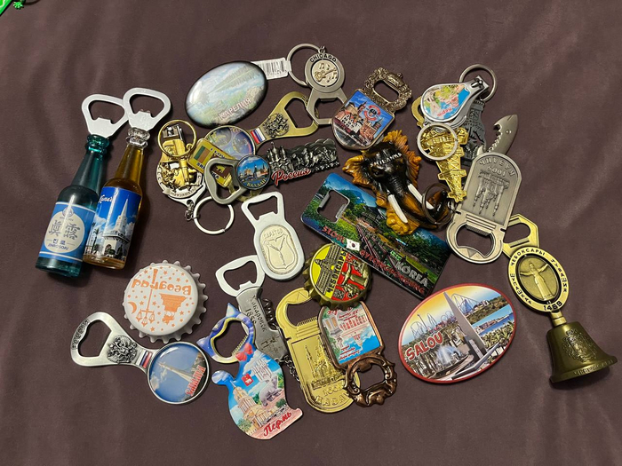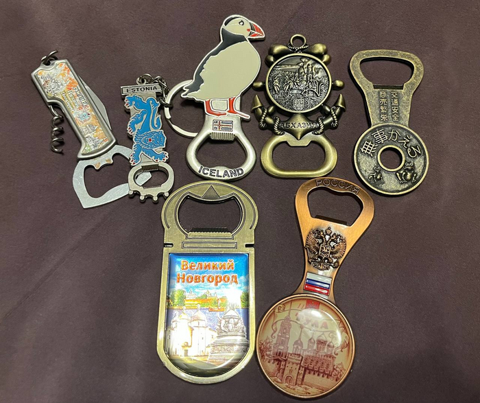 Так вышло, что я в какой-то момент решила из путешествий собирать пивные открывашки. Не то чтобы сильно оригинально, но зато их несложно находить в сувенирных лавках, и в хозяйстве пригодятся.