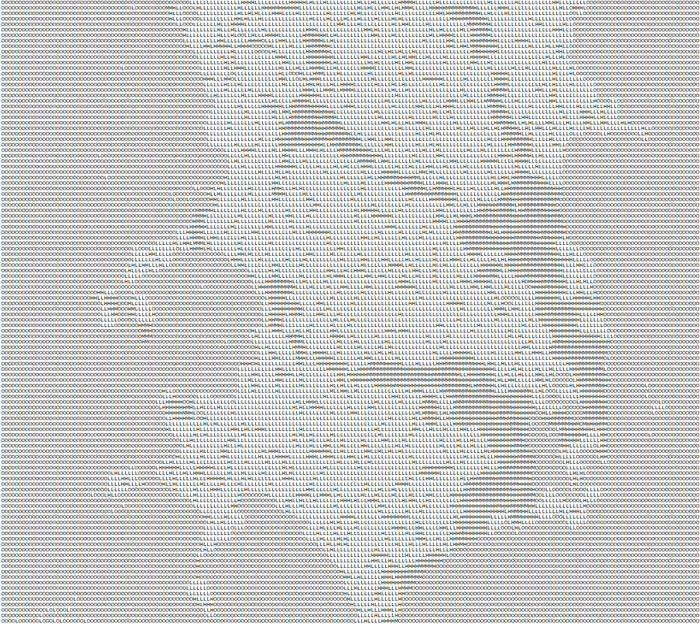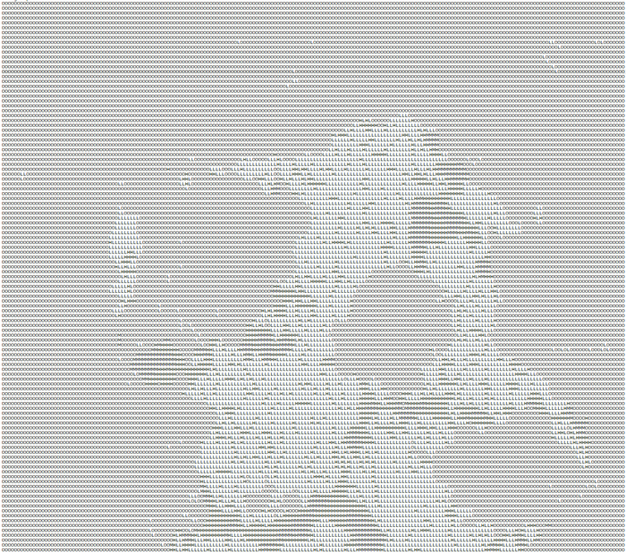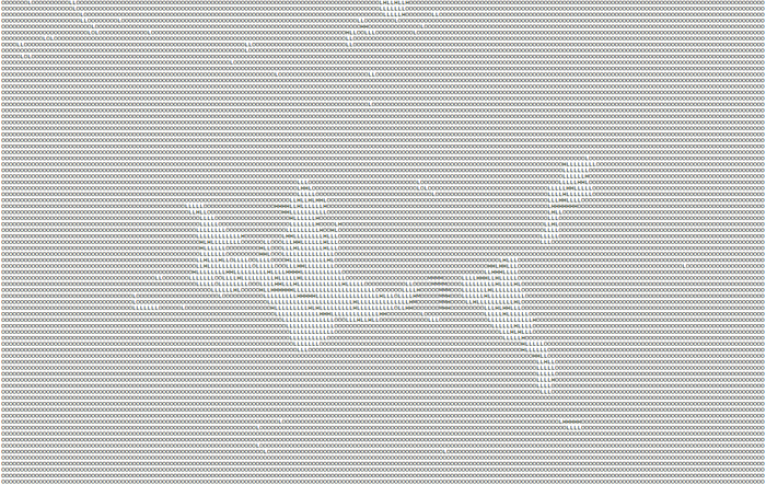 К счастью, генерация карт оформлена в виде lua скриптов, а значит есть шанс относительно просто исправить возможные ошибки генерации сверхбольших карт. Первым делом я понапихал отладки в скрипты, чтобы локализовать ошибку, ну, и, вывел в отладку саму карту, интересно же, что там в итоге получается. Карта получилась большая, чтобы карта была удобочитаема и можно было хоть что-то разобрать - разрезал на три части и отскринил. На карте символом О обозначен океан, L - суша, H - холмы, M - горы.