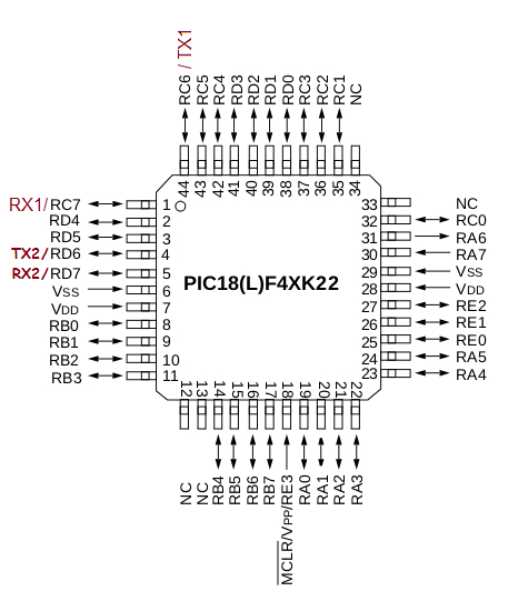 - выбрать требуемый UART порт, так как PIC18F46K22 имеет два USART модуля, а программа Bootloader'а по умолчанию использует первый.
