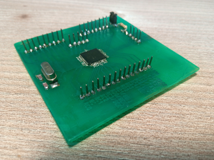1. Распайку микроконтроллера на плате;