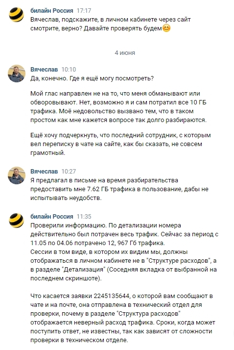 Написал в чат специалисту, написал на почту otvet@beeline.ru. Меня вновь успокоили и ответили, что обязательно решат мой вопрос до 07.06. Вопрос сложный, про меня не забыли, люди работают и т.д.