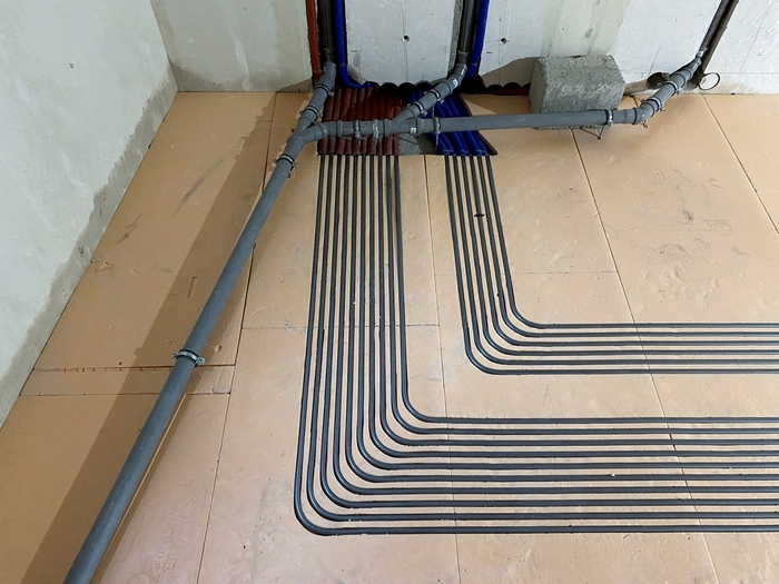 1. Теплый водяной пол в бетонной стяжке. Нагрев от электрического котла.