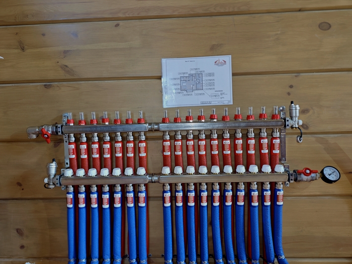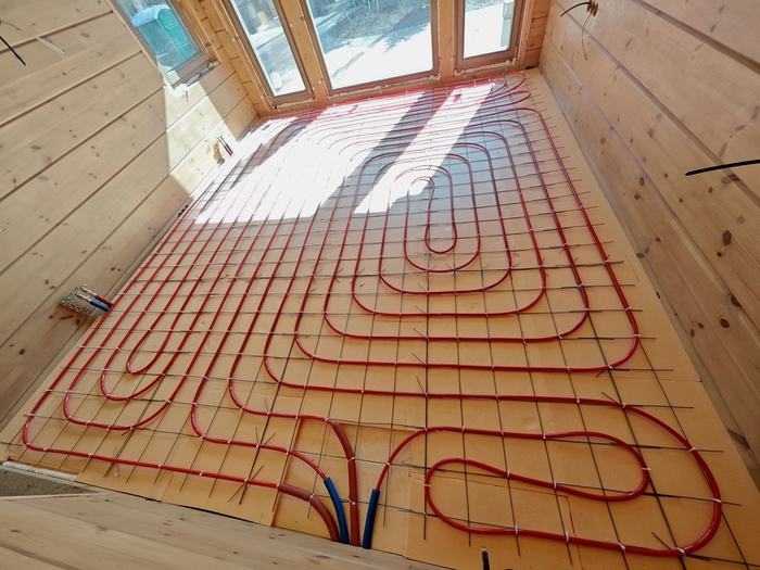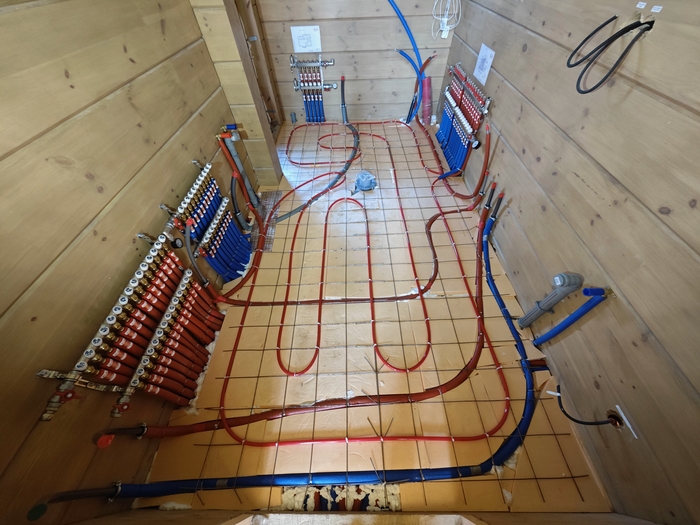 по поводу автоматики - я ограничился термоголовками на радиаторы, мне этого хватает чтобы поддерживать температуру в помещении с разбегом около 1 градуса. Т.е. пол выставляем на комфортную температуру, если мощности пола не хватает - термоголовки открывают в нужный момент радиаторы и догревают воздух. если лень крутить котёл при сильных перепадах уличной температуры - можно воткнуть копеечный ntc терморезистор с али чтобы температура теплоносителя регулировалась по погодозависимым кривым, а не была статична. если конечно котел это умеет (у меня бакси эко нова 24ф)