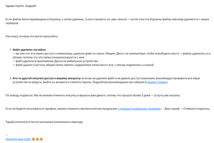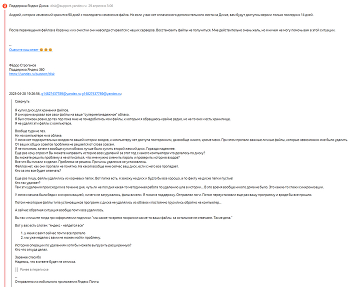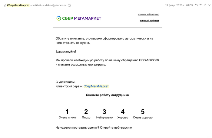А на днях пришло письмо следующего содержания: «Мы провели необходимую работу по вашему обращению GDS-1063688 и считаем возможным его закрыть». Не, это круто, что провели и что считаете нужным, а результаты-то какие?