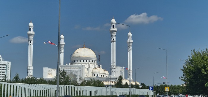 Единственное место, где мы оделись, это перед Грозным, так как хотели поглазеть на мечети в самом Грозном и в Шали(вроде так называется населеннвй пункт), тут уж без вариантов, тут и местного в шортах ссаным веником погонят из мечети.