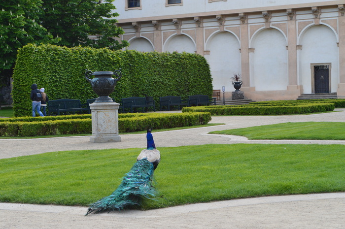 Дальше красивый Вальдшейнский сад со скульптурами, павлинами, прудом.