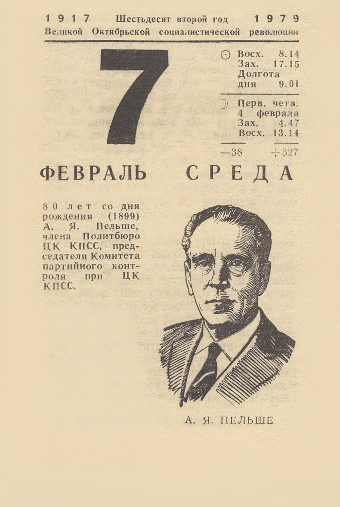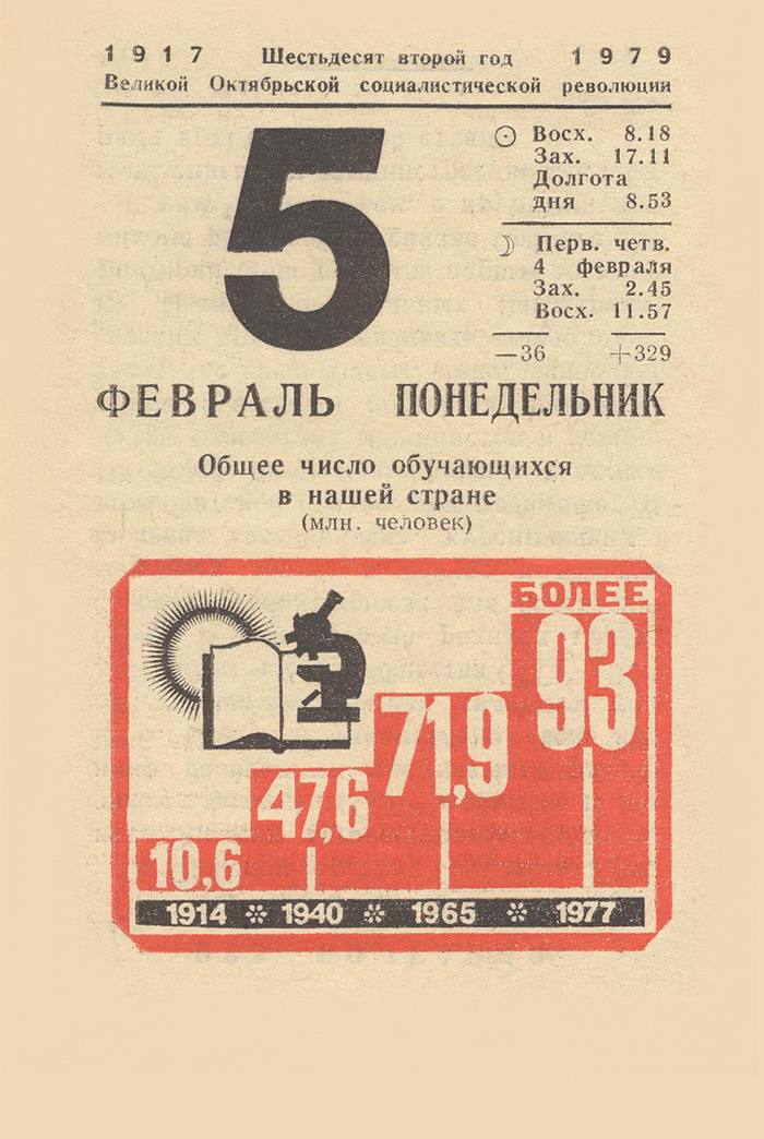 5 An12 История 7 февраля 1979 Серия Листок календаря 1979 1 день назад 1/2 Показать полностью 2 СССР Отрывной календарь 1979 Февраль Ещё 0