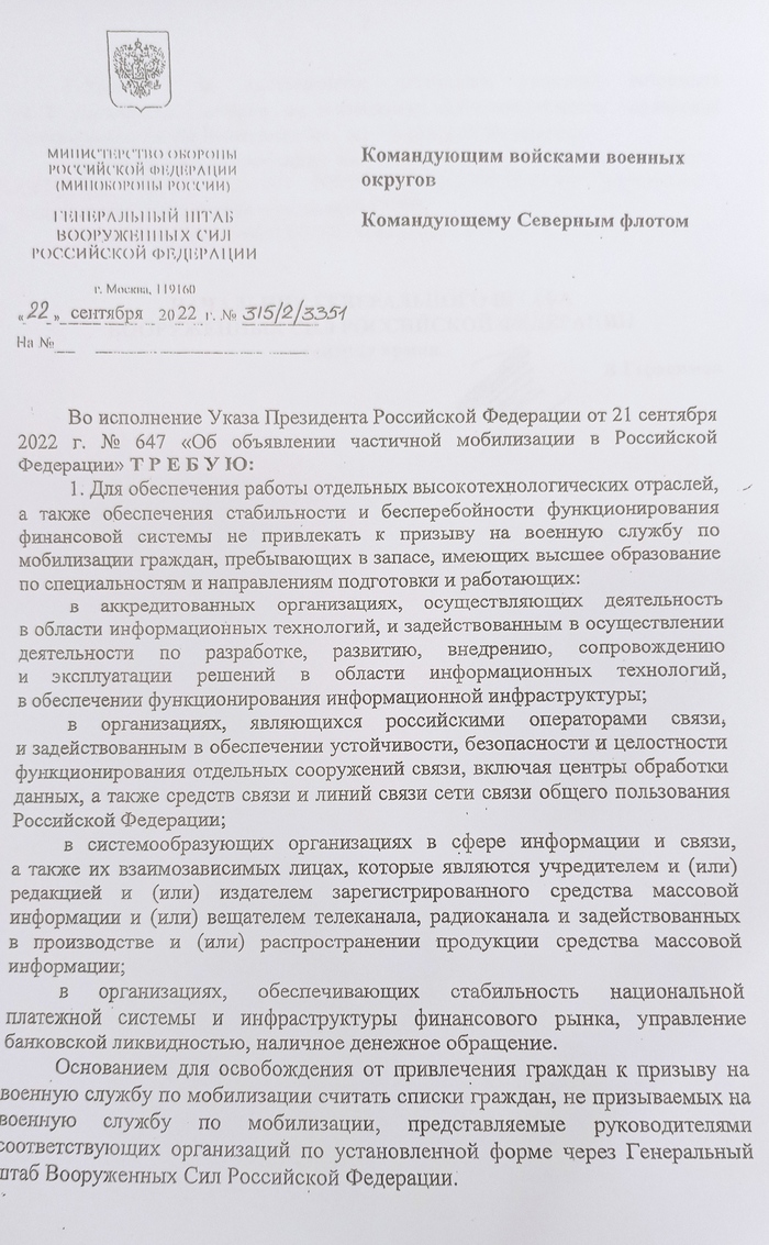 Российский книжный союз попросил Минпромторг ввести отсрочку от частичной мобилизации для работников полиграфической отрасли