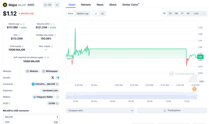 В результате вывода монет из проекта я получил 5259 мейджеров ($MAJOR). В день листинга случилось резкое снижение, но мне удалось сделать фиксацию при 1.2.