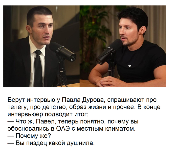 Павел Дуров — восьмикратный сын маминой подруги, идеальный душнила параллельной Вселенной, разработчик айти бозетьки ти мой, дал интервью Фридману.