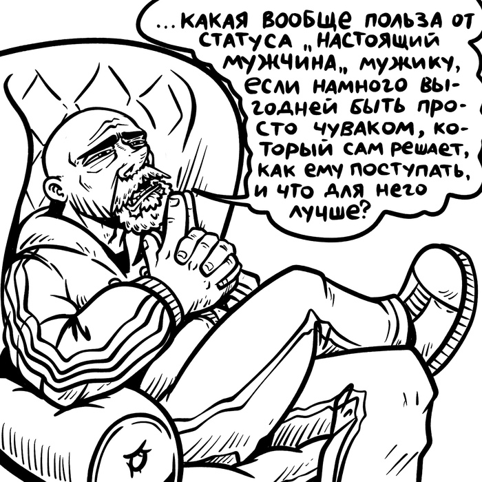 P.S.S. Я реально сидел и думал, что такое теряет мужик, если у него забирают статус «Настоящий мужчина»… Пока что я пришёл к выводу, что теряет от этого только тот, кто забирает этот статус😅