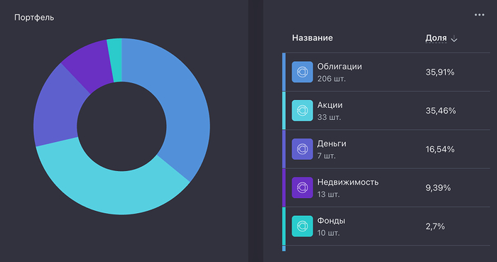 Скрин из сервиса учёта инвестиций — все категории