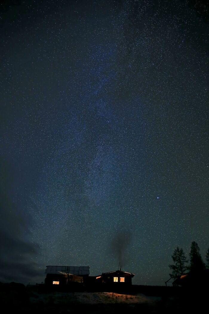 - Дача – это два домика, банька, зимняя и осенняя стайки, сеновал, сарай и навес для мотоцикла и стройматериалов, летняя кухня. Немного в стройке помогли младшие братья, они живут в Багдарине. Еду я готовлю на печи, летом - на костре. Есть баня, в ней и моюсь, и стираю. Привез корову, телят, быка. Есть сенокосы, пастбища. В лесу водятся зайцы, боровая дичь, есть лисы, реже косули. Весной и осенью - утки, гуси. Ягода - брусника, голубица. На охотничий сезон беру лицензии на соболя, кабана, зайцев. Весь июнь делаю салаты из дикого лука. В реке рыба - хариус и ленок, налим, ловлю немного, по сезону. В отдаленных озерах ( 20 - 30 километров от меня) водится карась, налим. Иногда осенью рыбачу. Рядом есть пруды с небольшими карасиками и гольянами. В будущем можно развести домашних гусей. Вода в реке чистая, рядом лиственный лес. На дрова использую сухостой, то есть сухой лес, и ветровал. Климат здесь прохладный, мало гнуса, клещей нет вообще. Это высокогорье - 1300 метров над уровнем моря, - описывает свое место обитания отшельник.