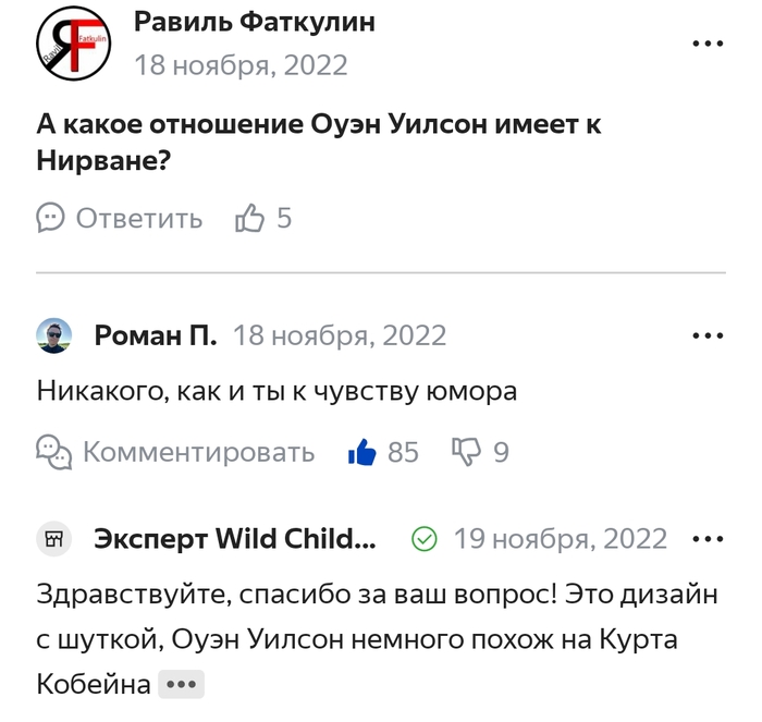 59 Belus Специфический юмор Нирваная футболка 2 года назад Смотрел тут футболки с приколами, наткнулся на комментарии... Показать полностью 3 [моё] Юмор Комментарии Яндекс Маркет Расизм Показалось Оуэн Уилсон Nirvana Длиннопост 1 1 Ещё 0