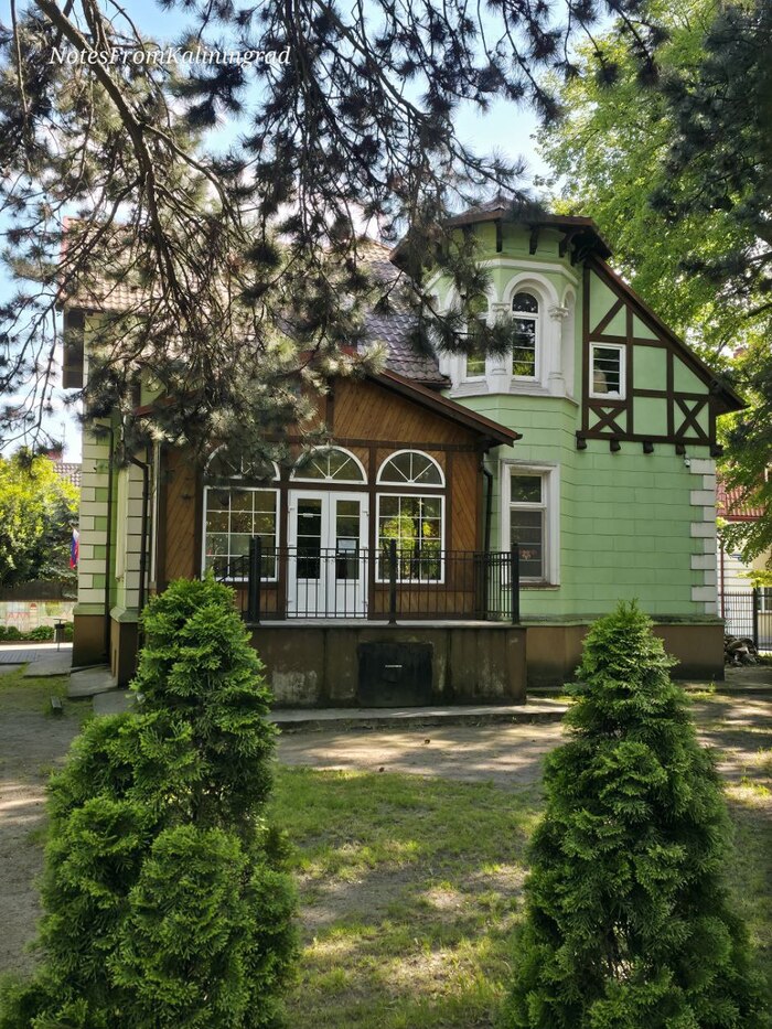 Здание сохранило свой исторический облик и выглядит ухоженно — вероятно, недавно провели капитальный ремонт. В довоенное время это была дорогая вилла, отражавшая статус владельца и архитектурные тенденции эпохи.