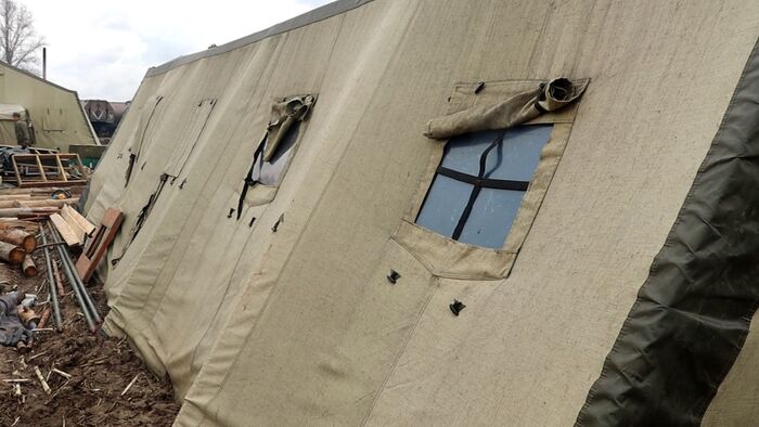 Так выглядят солдатские палатки, отопление дровами: