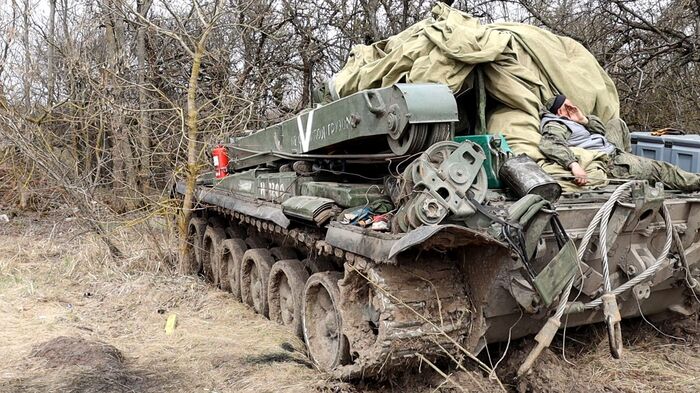 Боец отдыхает прямо на танке: