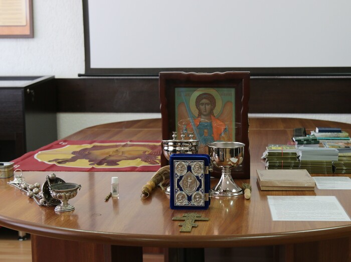В завершение встречи, в знак божьего благословения и духовной поддержки, офицерам Управления был торжественно передан стяг Спасителя.