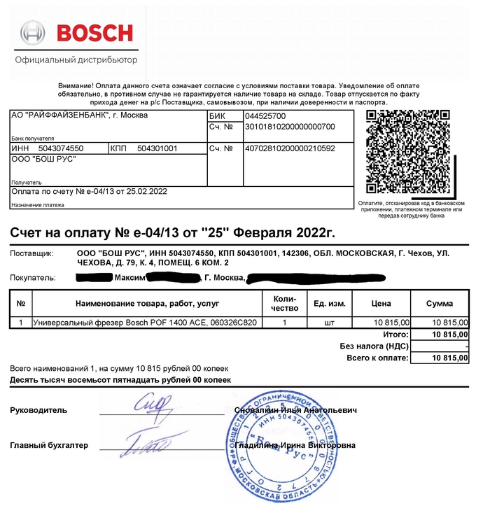 25 февраля 2022 воодушевление ударило мне в голову навылет, и я захотел купить официальный инструмент с гарантией. Перешел на страницу https://www.bosch-professional.com/ru/ru/dealers/ , потыкал ссылки и сравнил цены в нескольких магазинах, естественно выбрал самый дешевый вариант нужного мне фрезера и перешел по ссылке https://bosch-official.com/ . Это ж мать его сам ООО «Роберт Бош» меня направил к своему дилеру.