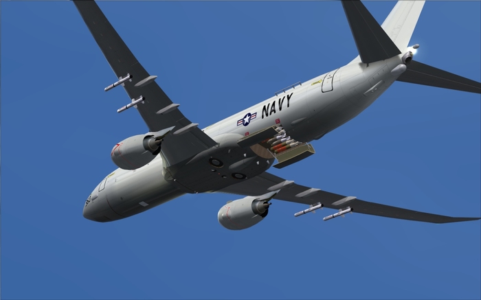 «Посейдон» с открытым бомбо-люком и ракетами AGM-84 Harpoon.