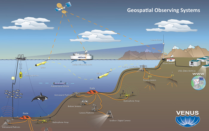 Система подводного мониторинга прибрежной зоны VENUS во многом идентична NEPTUNE и включает в себя те же компоненты.