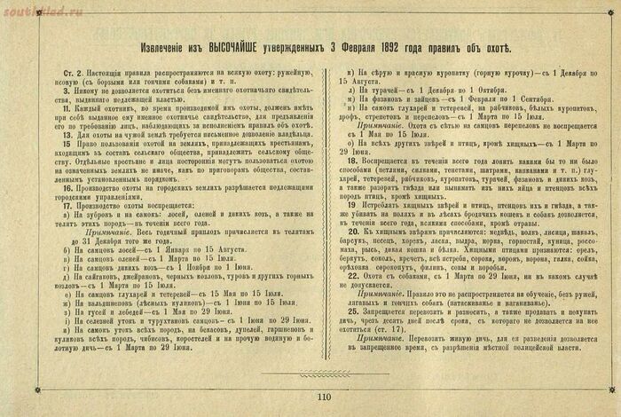 Правила охоты были весьма любопытны, посмотрите на выдержки из правил охоты, утверждённые самим царём.
