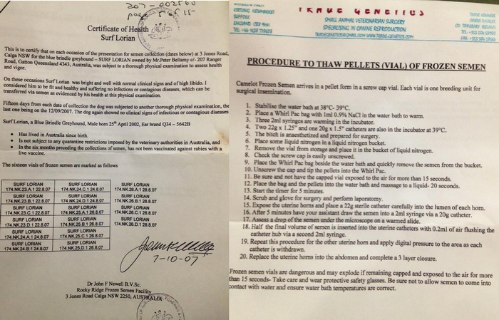 На фотографии слева: документы на племенной материал жениха, справа: инструкция по «обращению» с племенным материалом.