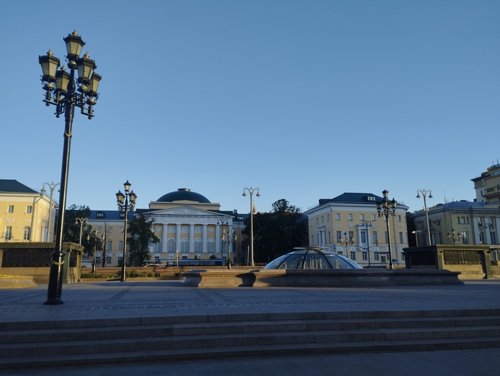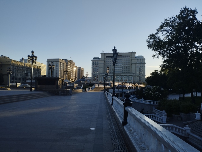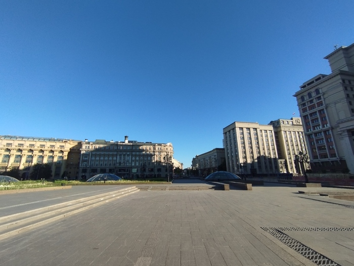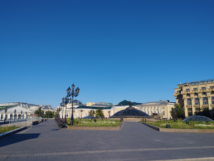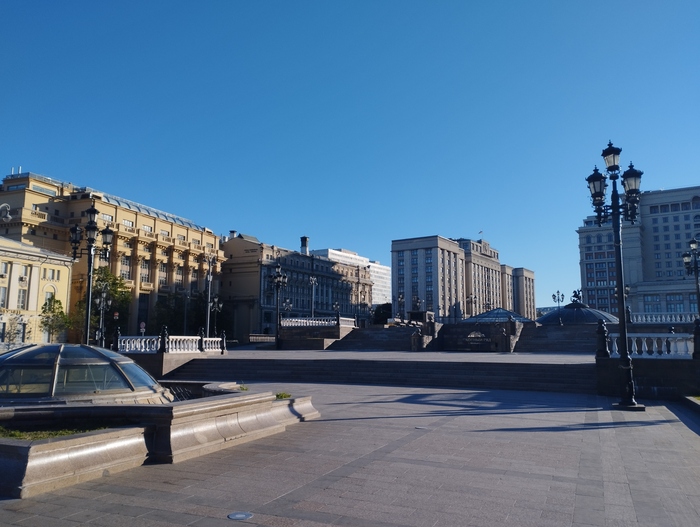 Сейчас Манежная площадь - это пешеходная зона отдыха, с подземным торговым центром "Охотный ряд", с ресторанами и кафе. А также с Александровским памятником и Постом №1 и Вечным огнем.
