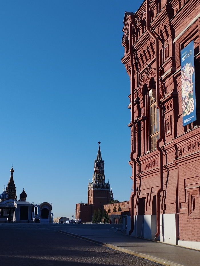 Главная площадь страны. На фото видна Спасская башня, Храм Василия Блаженного, Кремлевская стена с ее мини-секретами. Вне кадра резиденция Президента РФ.