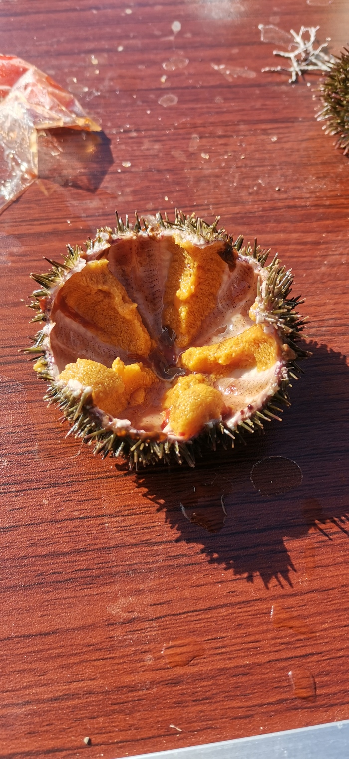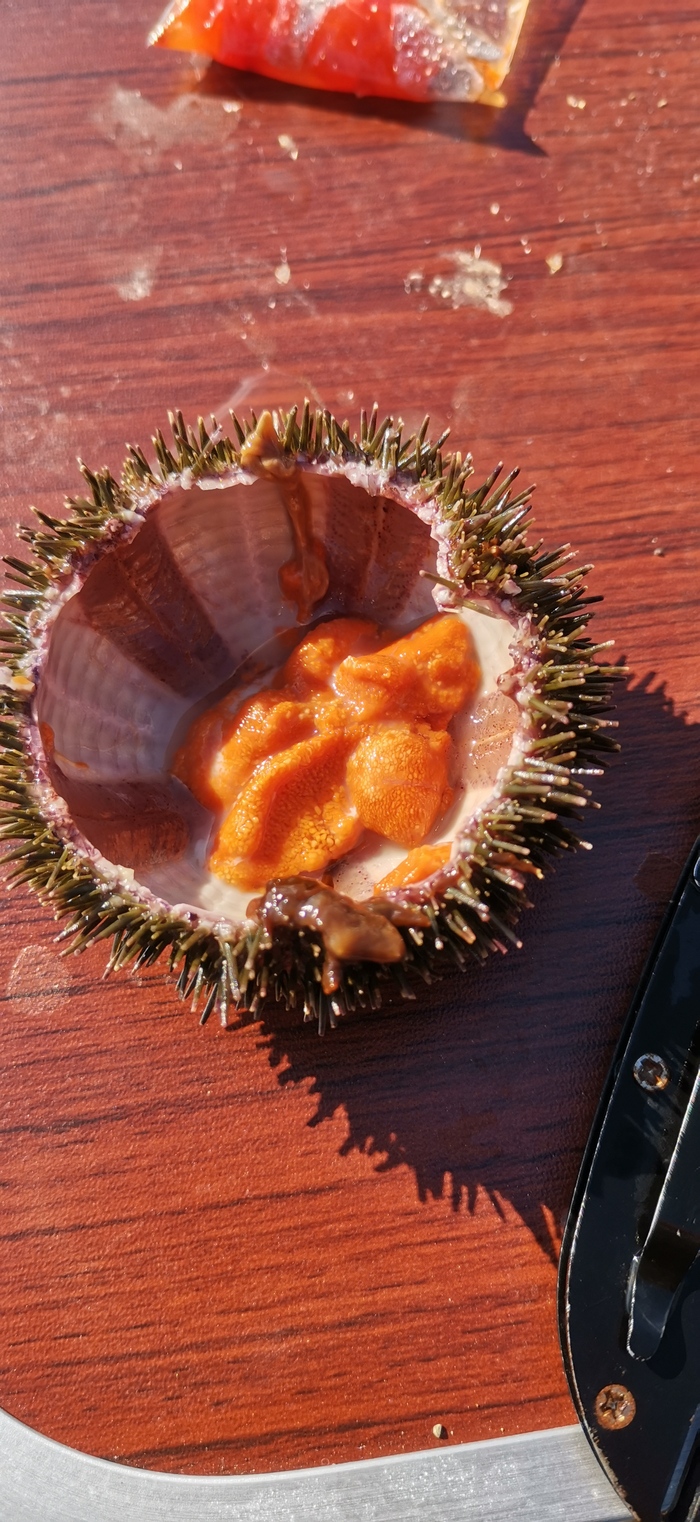Игорь с супругой встретили меня своим уловом, горстью морских ежей, блесен и утерянным кем то инструментом.