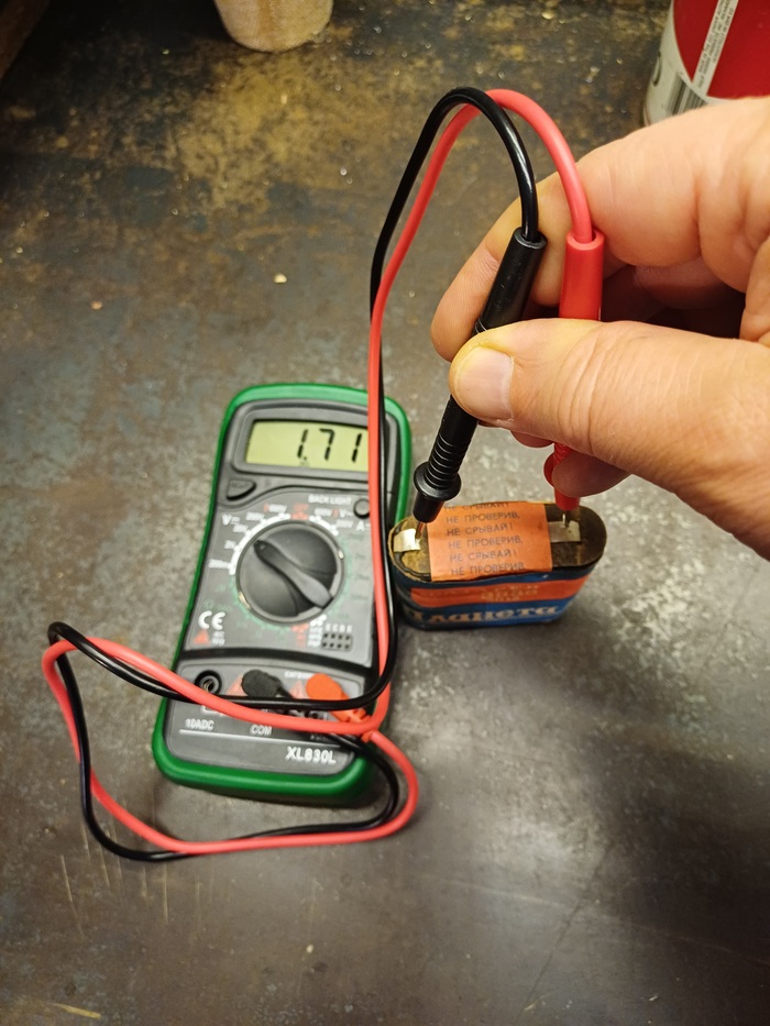 А поскольку зумерская Цешка была со мною, решил измерить потенциал этой "новой" батарейки. Проверил, не сорвав!